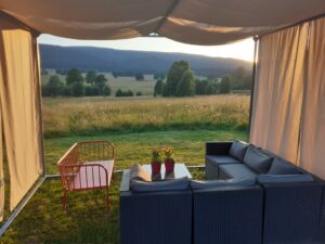 Poranną kawę na tarasie z widokiem na Dolinę Dzikiej Orlicy, spokojny wieczór przy kominku czy podziwianie zachodu słońca docenią dorośli, dzieci - wyścigi po rozległych łąkach czy okoliczne atrakcje. Dla wszystkich - mamy propozycje bliższych i dalszych wycieczek, kijki do nordic walking, rowery i kąpiel w zewnętrznej podgrzewanej wannie. Zapraszamy!
